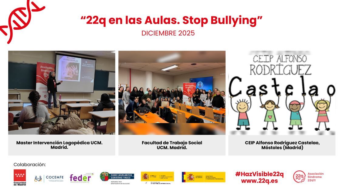 En el mes de diciembre hemos continuado desarrollando el proyecto "22q en las Aulas. Stop Bullying", un mes muy especial ya que es el mes de concienciación.